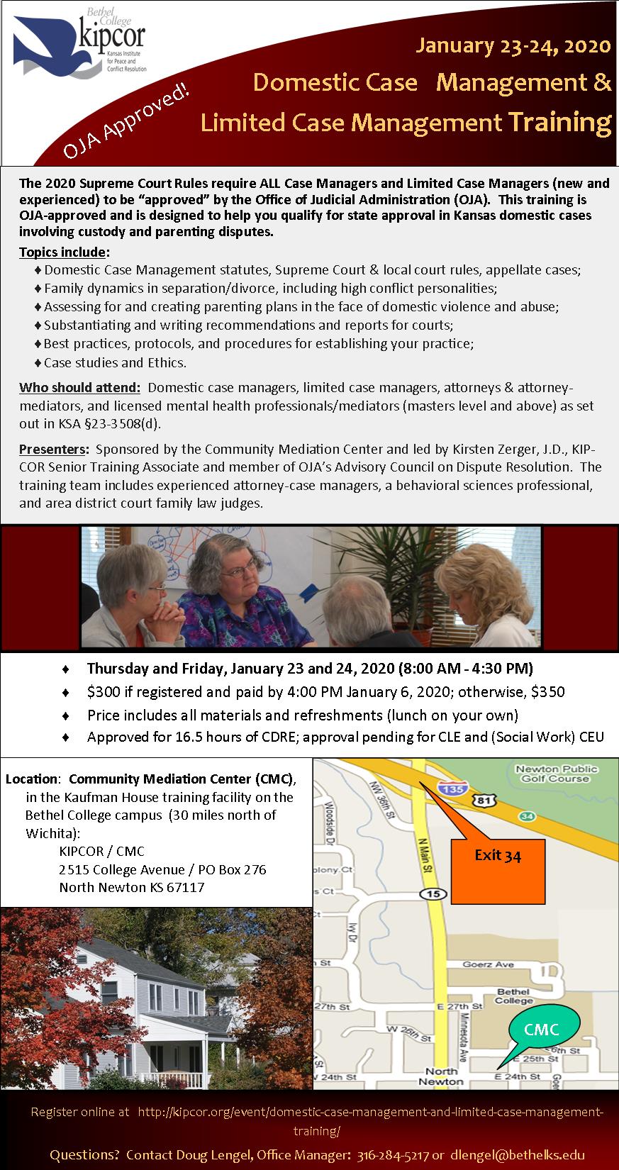 Who should attend: Domestic case managers, limited case managers, attorneys & attorney-mediators, and licensed mental health professionals/mediators (masters level and above) as set out in KSA §23-3508(d).